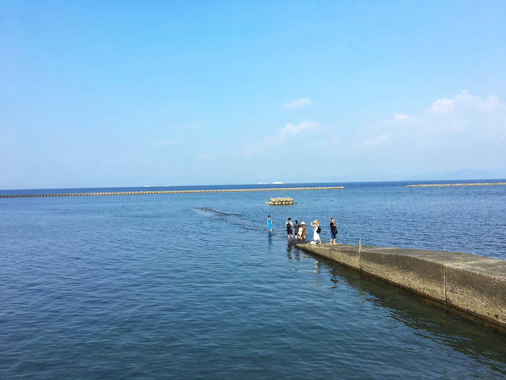 下山,來到市區海邊,指宿溫泉中最有名的“砂樂”砂蒸溫泉會館。烈日下的砂蒸,大家看看都怯場,老人們休息,年輕人們則迫不及待地奔向大海。